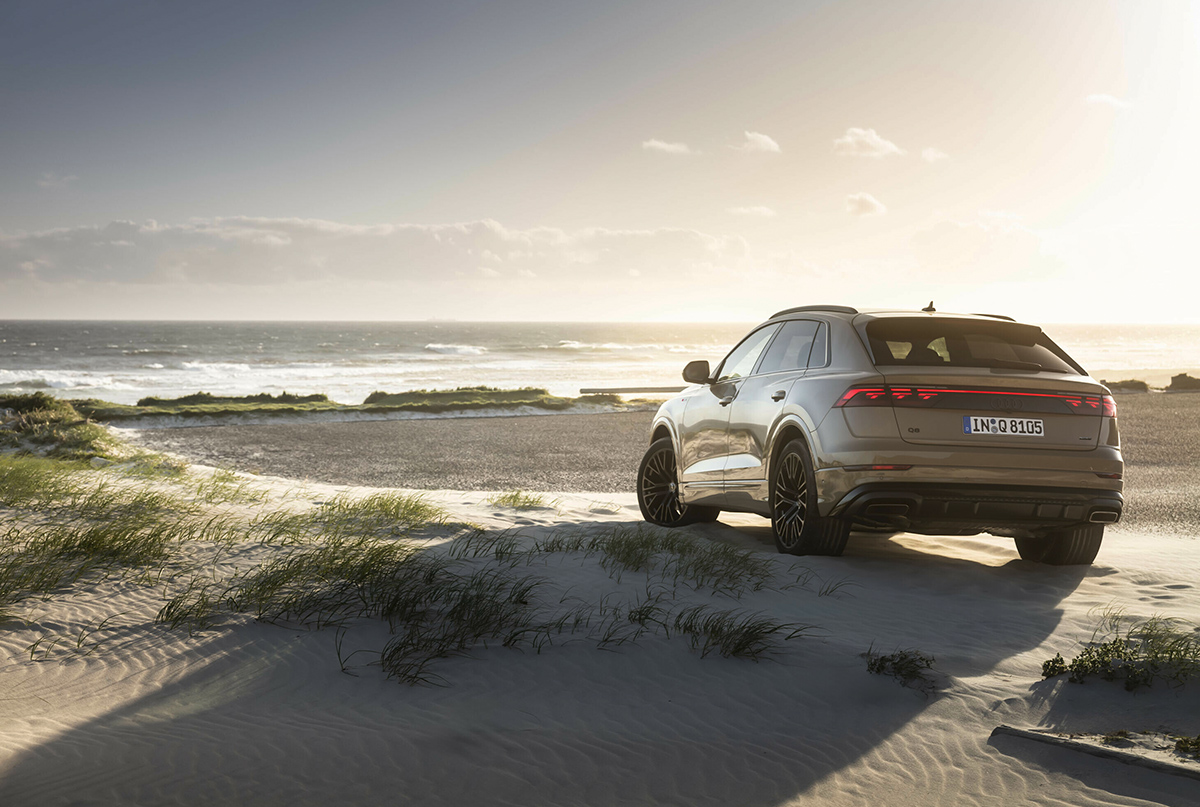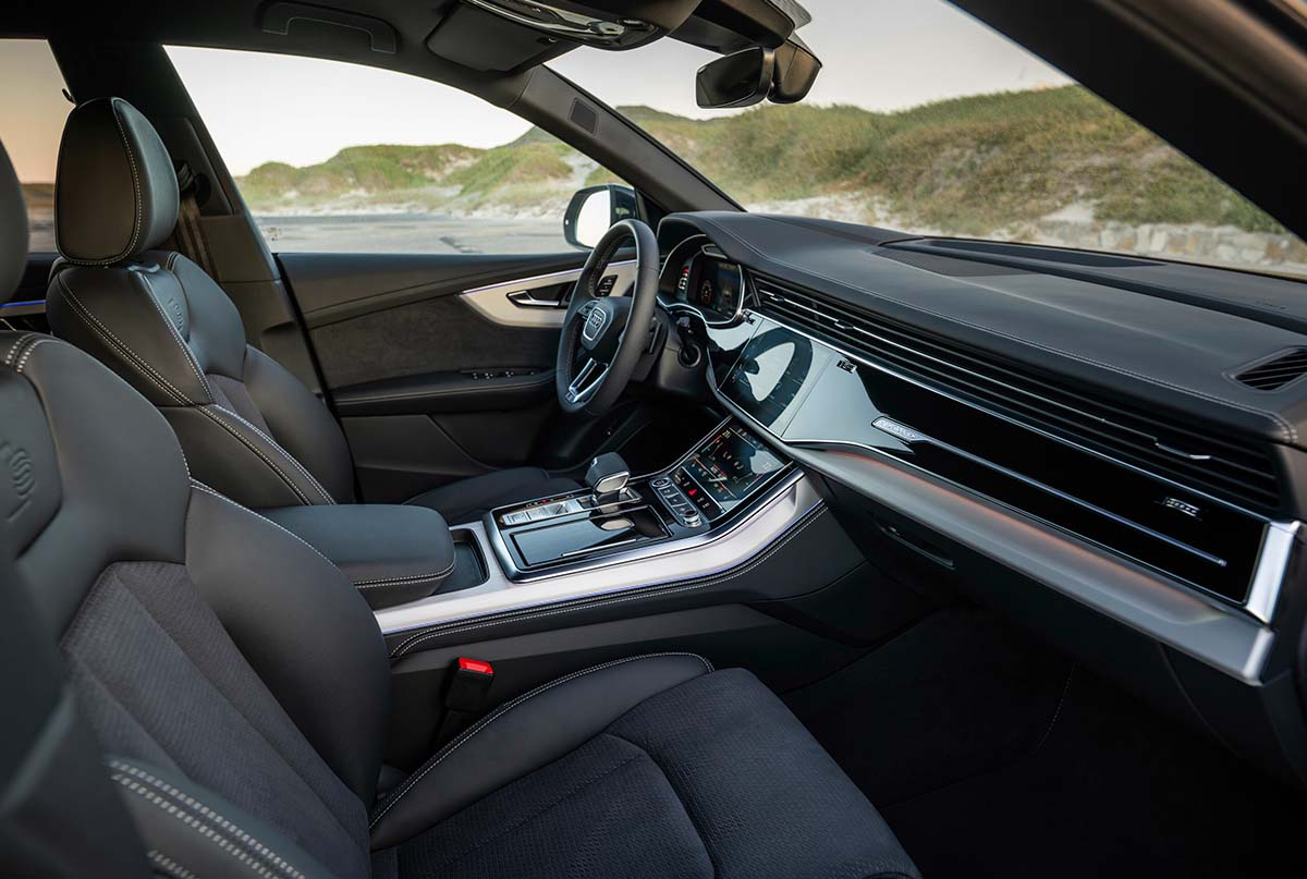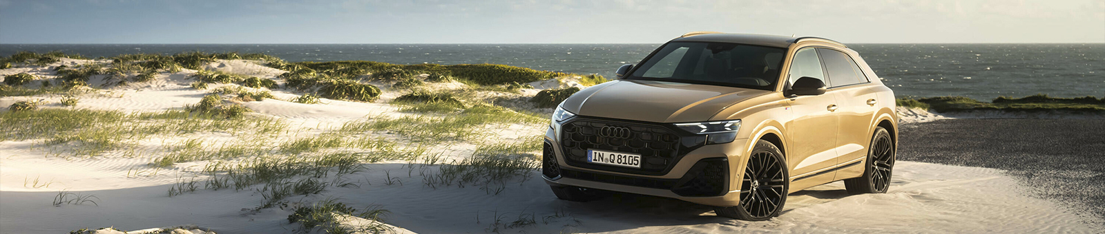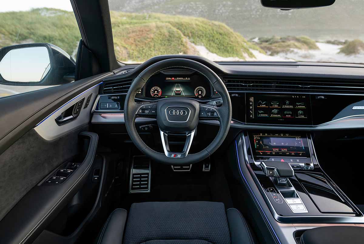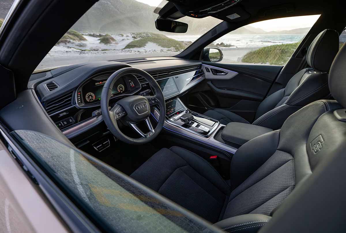 O Audi Q8 SUV se destaca pela silhueta coupé e pelo design robusto, que reforçam sua identidade esportiva e sofisticada. A dianteira com grade Singleframe ampla, entradas de ar marcantes e detalhes do pacote S line criam um visual forte e moderno. Na traseira, o difusor esportivo e os elementos bem definidos evidenciam sua proposta dinâmica. No interior, o Audi Q8 SUV oferece um ambiente amplo e refinado, com materiais de alta qualidade, acabamento premium e um conceito de espaço versátil. O teto panorâmico amplia a sensação de amplitude, enquanto o banco traseiro ajustável e rebatível garante mais flexibilidade e capacidade de carga no dia a dia.
