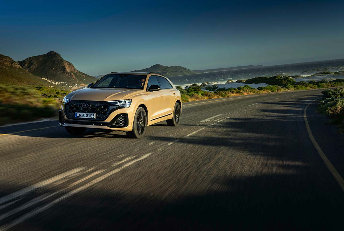Equipado com tração integral quattro, motor V6 e suspensão pneumática, o Audi Q8 SUV entrega uma condução estável e dinâmica. O conjunto garante mais controle em altas velocidades e versatilidade para diferentes tipos de terreno, equilibrando conforto e desempenho com eficiência.