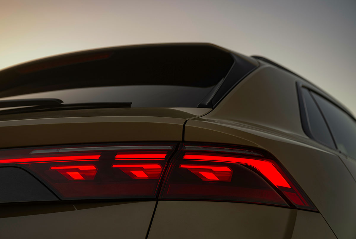 O Audi Q8 SUV conta com faróis Matrix LED HD com luz laser e lanternas traseiras OLED digitais, que oferecem alta precisão e alcance de iluminação. Além disso, é possível escolher diferentes assinaturas de luz, criando uma identidade visual personalizada e aumentando a segurança em diferentes condições.