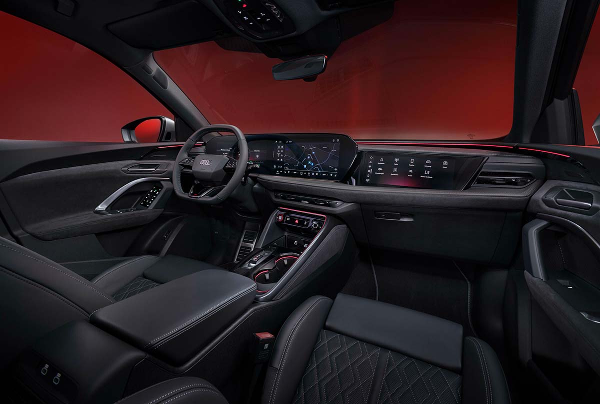 O Audi SQ5 Sportback traz assinaturas luminosas digitais configuráveis, com diferentes opções de personalização nos faróis Matrix LED e lanternas OLED. Além do visual marcante, o sistema inclui animações dinâmicas e funções de comunicação visual, elevando a segurança e a identidade do modelo.